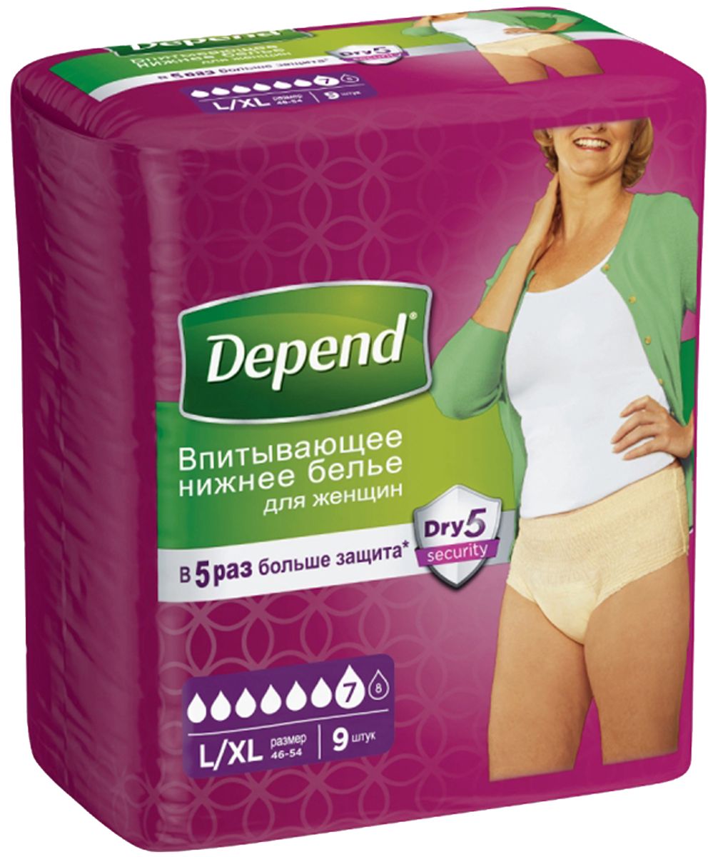 Читать все статьиKimberly-Clark Депенд белье впитывающее жен. L/XL 9 шт.
