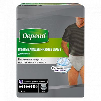 Читать все статьиKimberly-Clark Депенд белье впитывающее муж. L 9 шт.