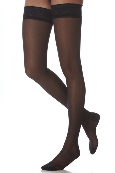 В верхней части чулок – силиконовая резинка с ажурным узором для лучшей фиксации и прилегания к конечности;