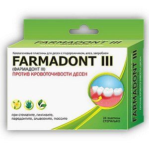 Коллагеновые пластины для дёсен FARMADONT III (Фармадонт 3) предназначены для профилактики и лечения воспалительных и иных заболеваний десен на любой стадии у детей и взрослых.