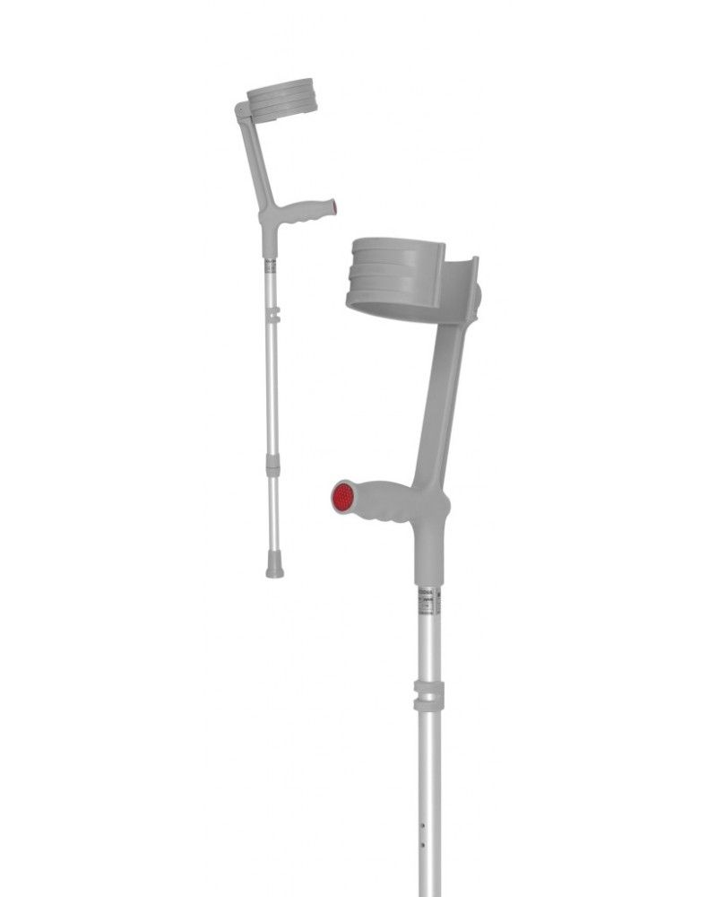 Локтевой костыль «канадка» 08/MR с регулировкой высоты, для снятия нагрузки с конечности при опоре и ходьбе. Костыль имеет откидной упор с захватом сбоку, чтобы не выскакивала рука. Сделан более большого диаметра упор в локтевой части, для удобства использования и возможности ходить в верхней одежде.