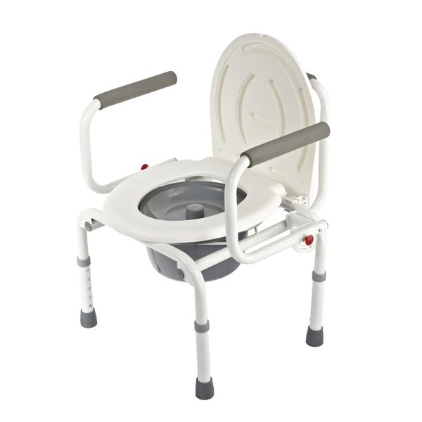 Подлокотники, оснащенные фиксатором, опускаются вниз, что облегчает процесс пересаживание с кресла-туалета и на него. Мягкие накладки на подлокотниках и спинке обеспечат дополнительный комфорт пользователя.