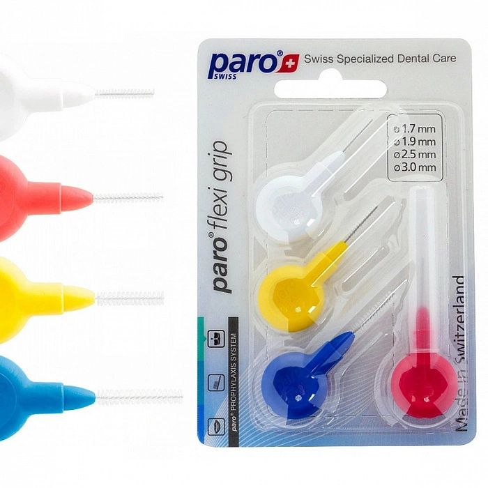 Межзубные ершики Paro flexi grip Set имеют спиралевидную форму и предназначаются для очищения промежутков между зубами, а также области ортодонтических конструкций. Такой ершик – незаменимая вещь для людей, имеющих импланты в ротовой полости, которые необходимо тщательно очищать от налета, скопившихся остатков пищи, а сделать это при помощи щетки и зубной нити не всегда получается достаточно тщательно.