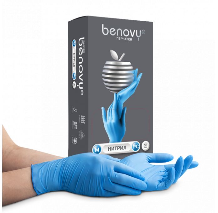 Читать все статьиПерчатки нитриловые Benovy / M голубые