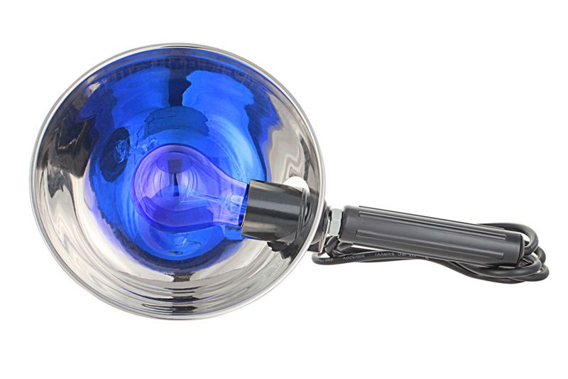 Синяя лампа излучает инфракрасные, ультрафиолетовые и видимые лучи, воздействуя на обрабатываемые участки теплом, полученным при помощи электрического света. Во время облучения синей лампой, лучи света фокусируются на определенном участке кожного покрова.