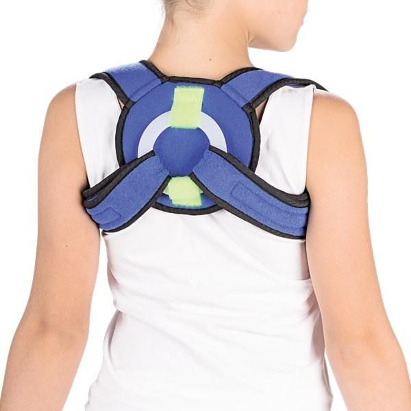 Изделие не рекомендуется носить на голое тело, его надевают поверх хлопчатобумажной футболки или майки. Расположите панель с пластиковым кольцом между лопатками, оберните ремни вокруг плеч, проденьте через кольцо и зафиксируйте в положении, обеспечивающем разведение плеч. Степень реклинации грудного отдела позвоночника и фиксации ключично-акромиального сочленения определяется врачом. Режим и сроки ношения определяются врачом