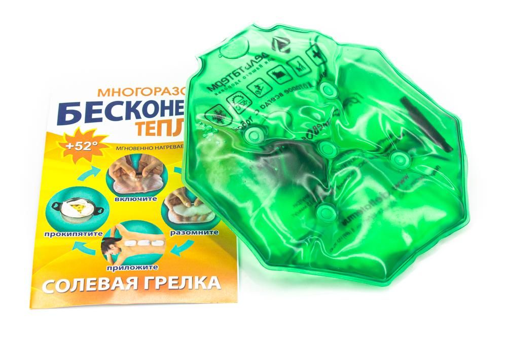 Солевая грелка детская многоразовая изготовлена из ПВХ в форме небольшого многоугольника . Предназначена солевая грелка для лечения в игровой форме детей до 5-6 лет. Грелка детская хорошо избавляет от коликов у младенцев. Яркая грелка привлекает внимание малышей и успокаивает их. Солевые грелки находят широкое применение в медицине, а также для обогрева рук и техники (фото и видеокамеры) при работе на морозе. После активации солевая грелка держит тепло до 30 минут. Как средство обогрева часто используются рыбаками и охотниками. В рабочем состоянии температура солевой грелки достигает 52 градусов.