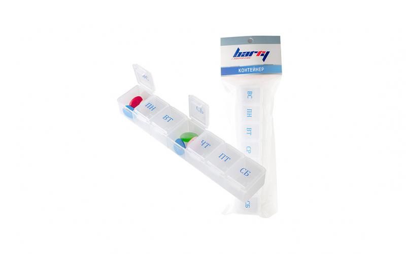 Компактная и удобная таблетница с разграничением по дням недели. Нанесение дней недели выполнено на русском языке и азбукой Брайля (для слабовидящих и незрячих людей).