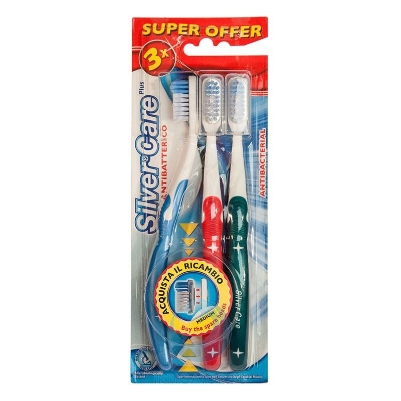 Семейный набор из 3х антибактериальных зубная щетка со щетиной средней жесткости Silver Care "Plus".